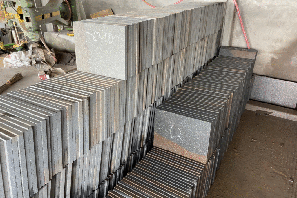 The polished slabs are cut into specific dimensions based on customer requirements. This can include tiles, countertops, or custom architectural elements.